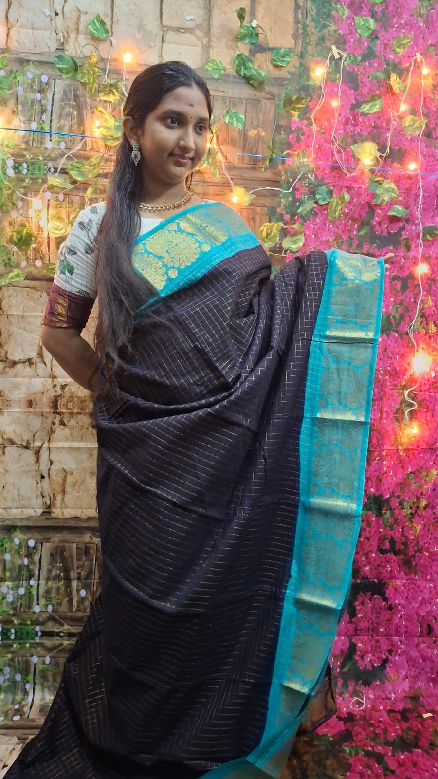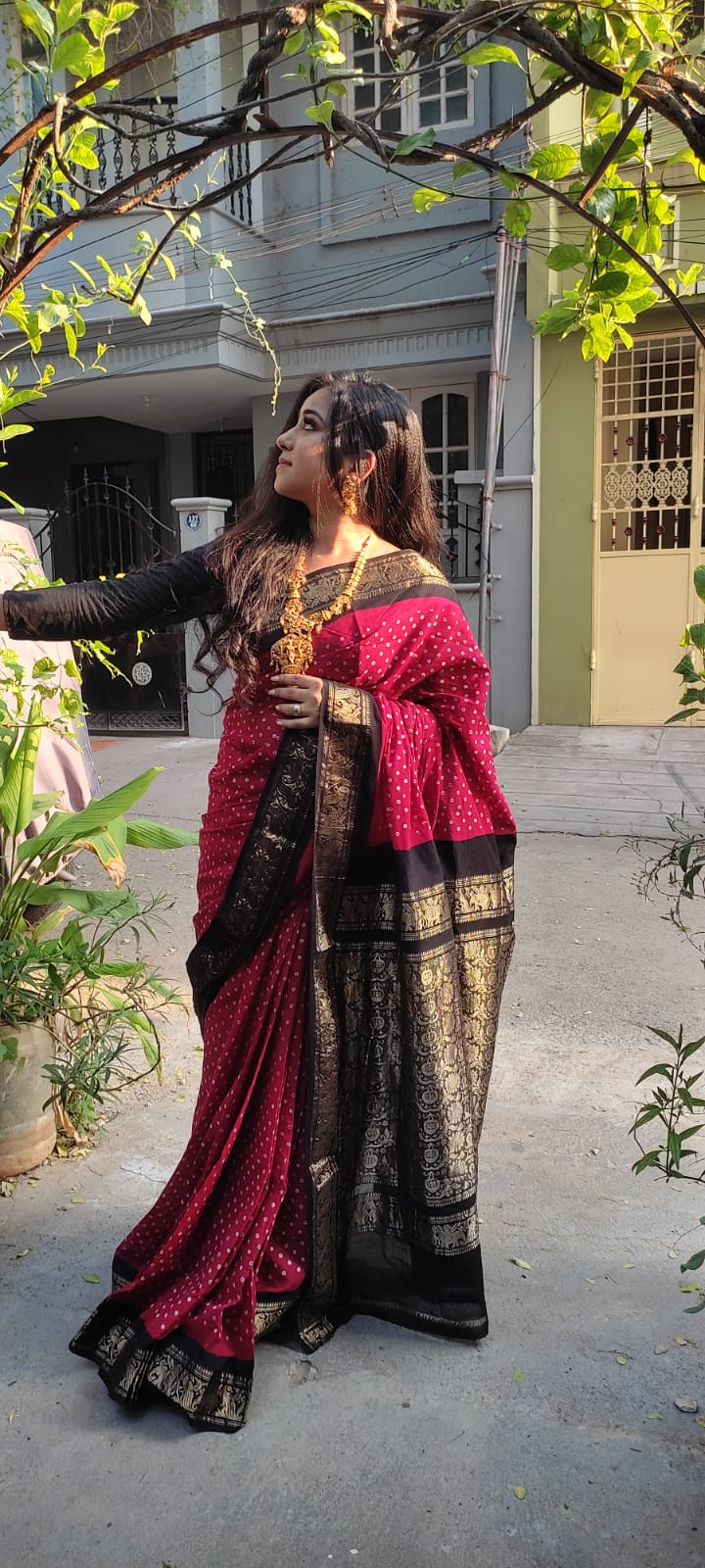 Madurai Sungudi Cotton - 6 Yard Meena Butta Double Side Gold Zari Border Dye and TIe