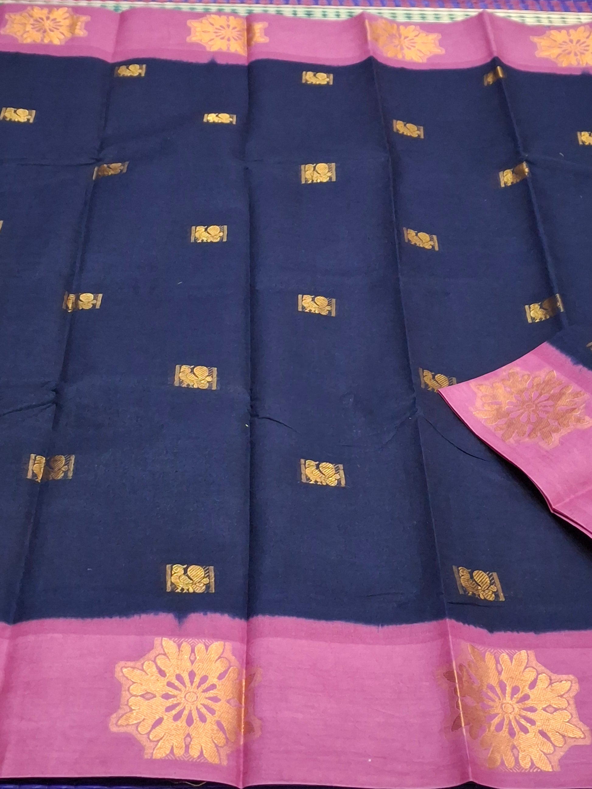 Type : Sungudi Cotton dye and Tie Annam Butta Medium Size Gold Zari Border